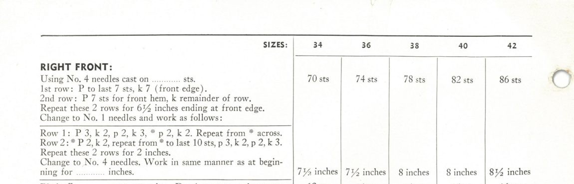 These vintage patterns are often difficult. The right front is on the right as you wear the sweater. It looks like you begin with a WS row by starting at the armhole edge on Row one and working toward the front edge. Then Row two is a RS row.