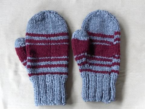 I made the full mittens first, using double yarn to make them extra thick (sometimes when I get going fast, my knitting gets loose, and I definitely didn’t want hole-y mittens!)