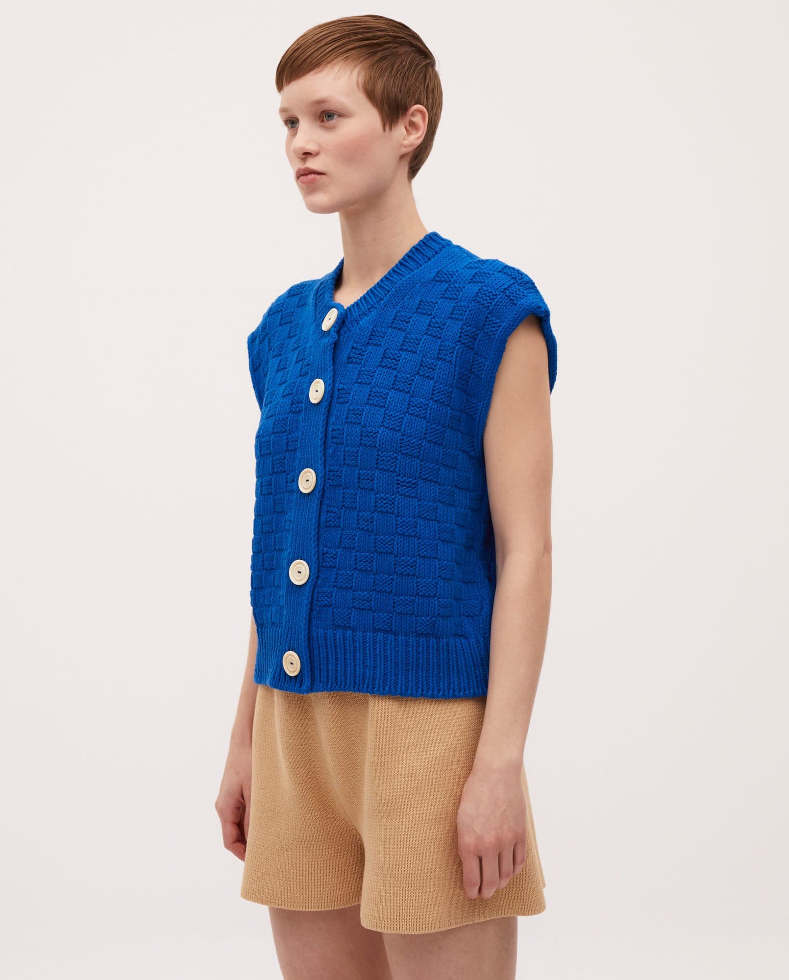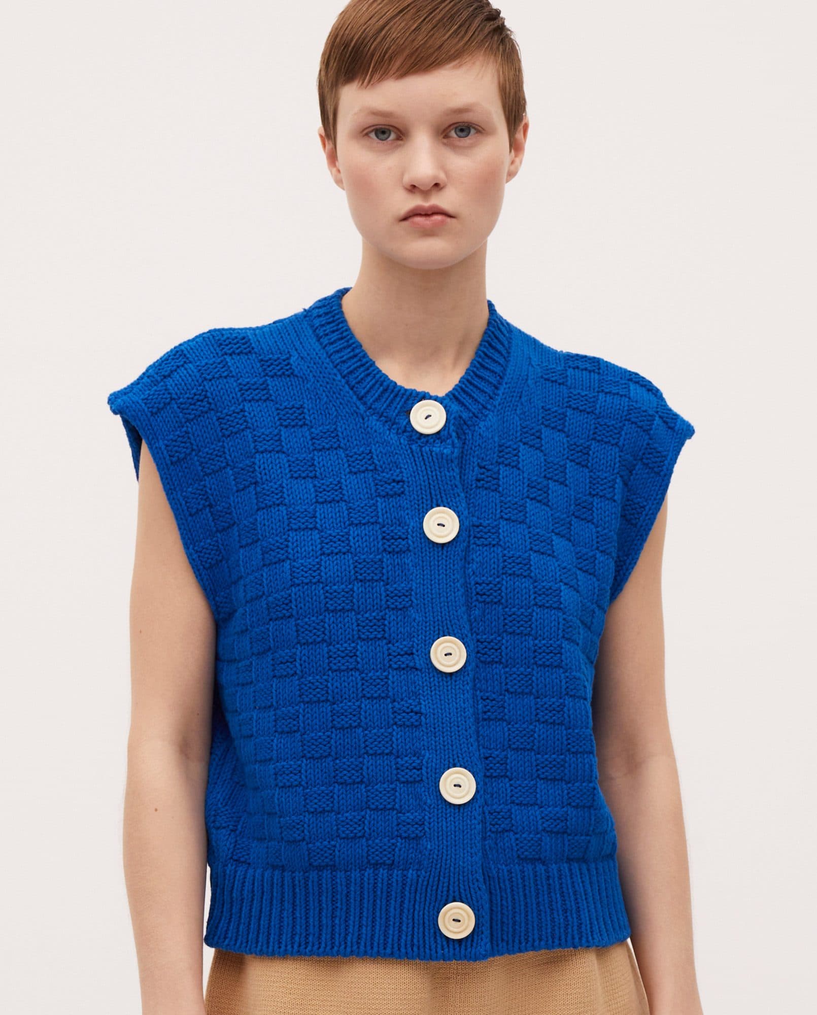Very pretty vest that nicely uses the checkerboard pattern.