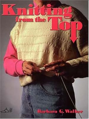 The top down sweater book is by Barbara Walker (not Barbara Walter). It is the same book that was linked to Amazon by Jan fromCA in her post. The front cover shows a woman wearing a top down sweater while she knits it (that isn’t really how its done It doesn’t contain formulas as in a fill in the blank type of grid like you see in some books, rather she explains what it is that you’re trying to do and then you can base the size on body percentages and measurements.