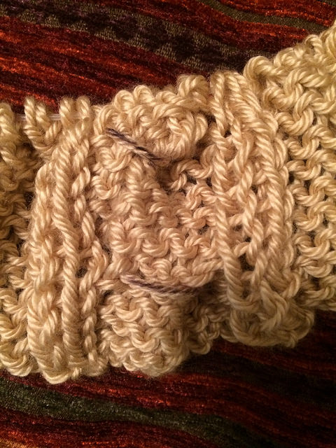 To describe it more clearly: The strings reach from where I finished knitting the part on the regular needle to where I start knitting the stitches on the cable needle. I’ve looked for photos of the backs of cabled pieces, but haven’t found any; I would include a photo of mine here, but that doesn’t seem to be an option.
