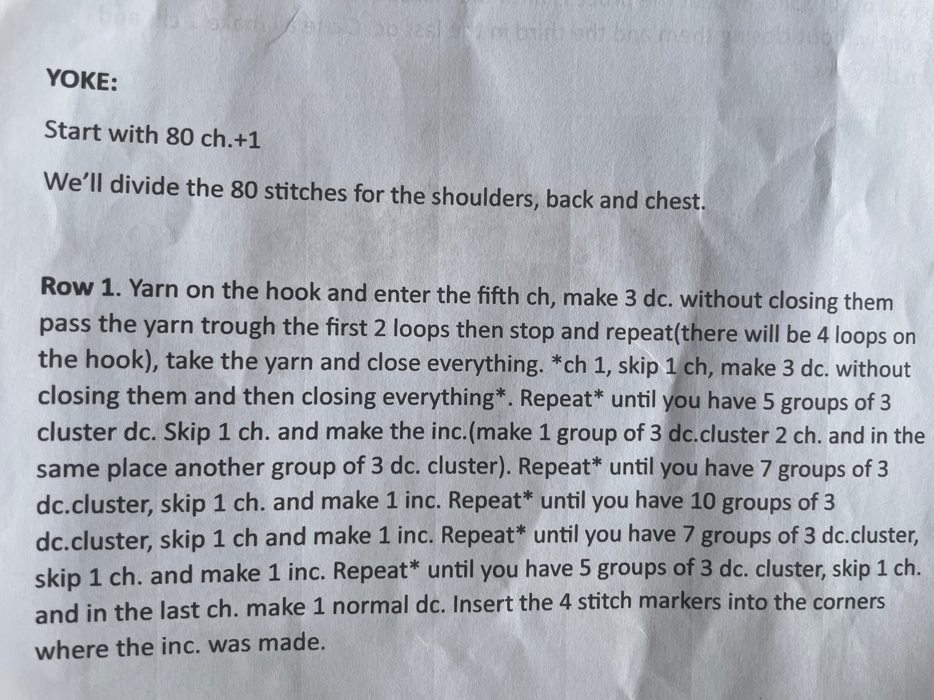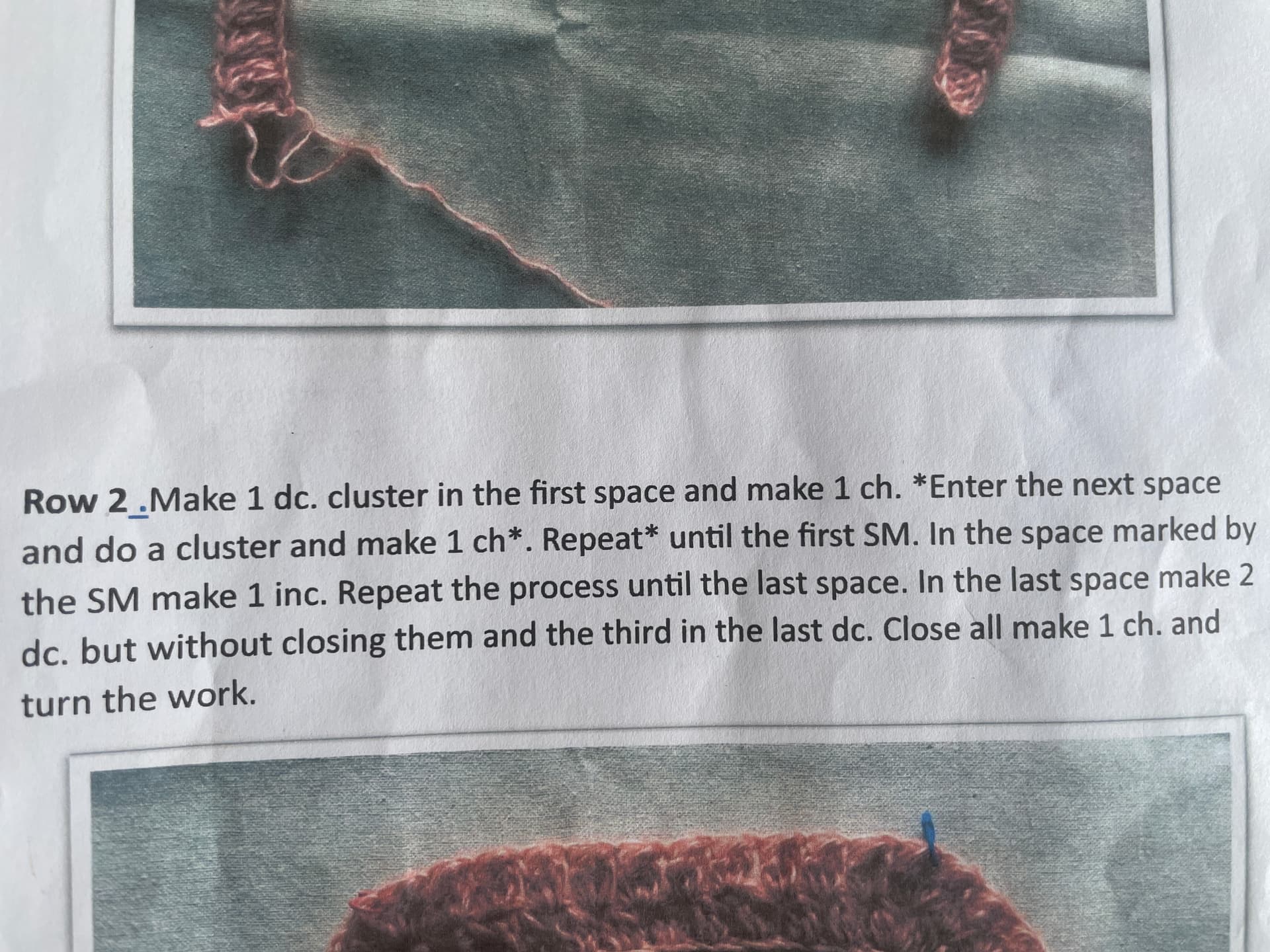 Please I need help as I’m having issues working out how many cluster stitches I should have in each row and section (front/back/shoulder) following the increases. The pattern has a video attached in Italian so it’s a bit tricky to follow. I’ve posted photos of rows 1-3 for guidance.