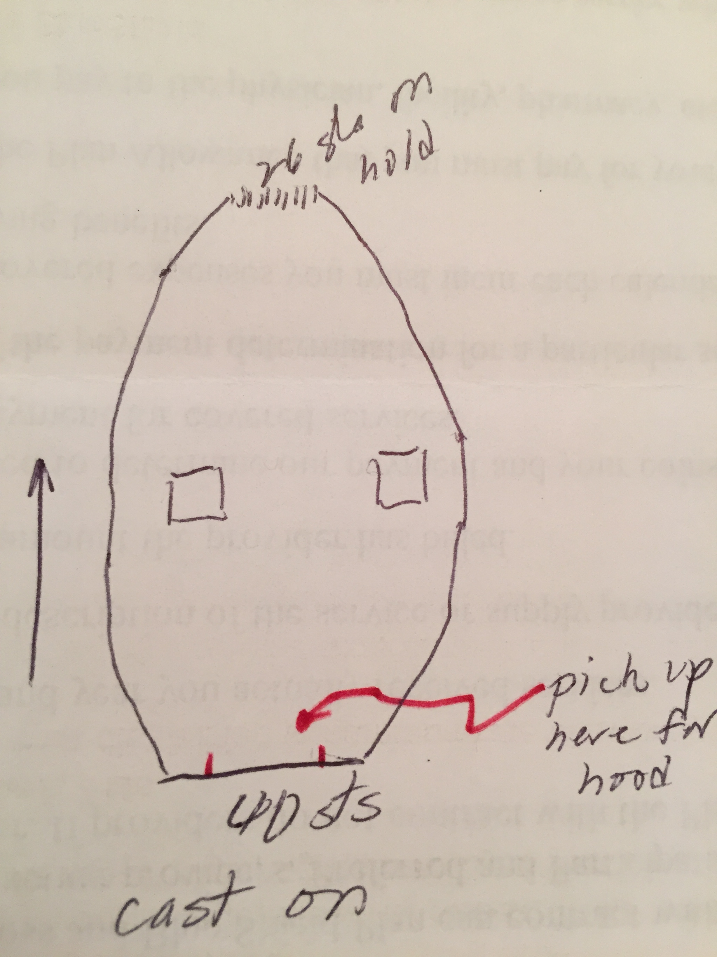 If your pattern reads differently, you can post a few rows of the directions for the hood. Just a couple of rows please due to designer copyright.