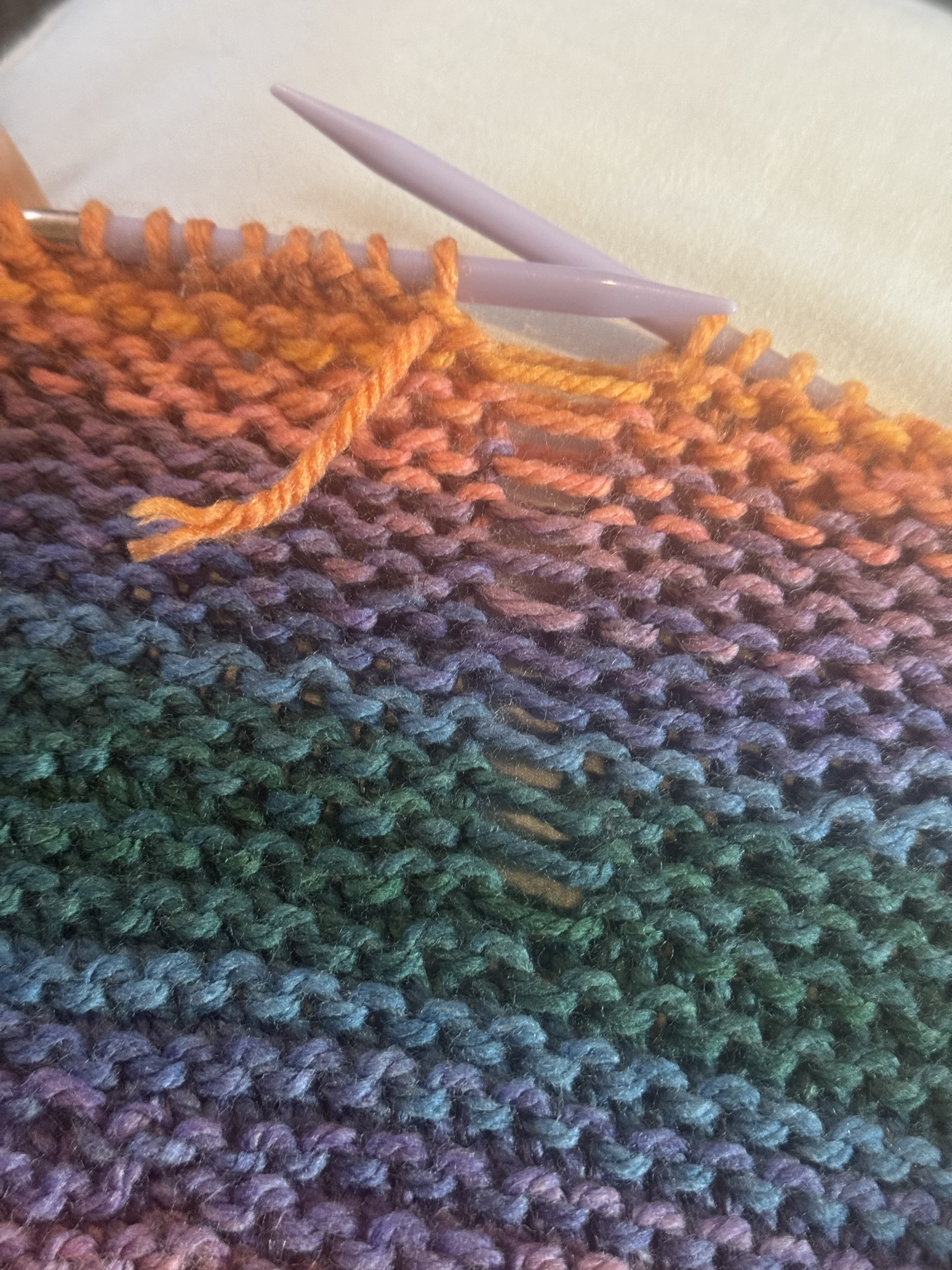 One other thing I’ll mention, your yarn tail is very short, ideally you would stop knitting earlier than this and join in a new ball to continue, leaving a 10cm to 15 cm tail to weave in later. It’s best not to try to knot the new yarn onto the tail as knots can work loose when laundered.