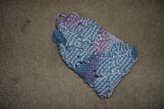 I got the patterns for these out of Knit It magazine. I would post the patterns but I don’t think they would like that. I used one skein of Peaches n’ cream yarn for both of them.