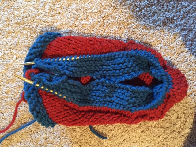 the top loops of the last ridge of garter st around outer edge of slipper