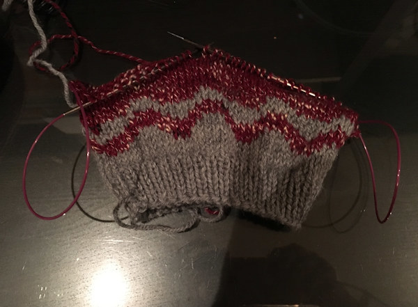 I agree that it’s a pain in the rear working with multiple balls of yarn. Before I started my current project, I made a pair of striped socks (toe up, two at a time with magic loop) for my son. It was hard enough to keep things from tangling with only 2 balls of yarn. It was even worse during the color changes when I added 2 more. I don’t see myself doing it again anytime soon, but you never know! I do have a few other projects in mind before the end of the year. Some of them do involve multiple colors!