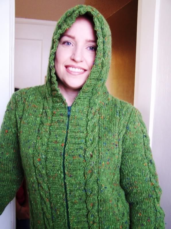 [CENTER][B][SIZE=4]That hoodie is beautiful, and so is your green eyed daughter! Nice knitting.[/SIZE][/B][/CENTER]