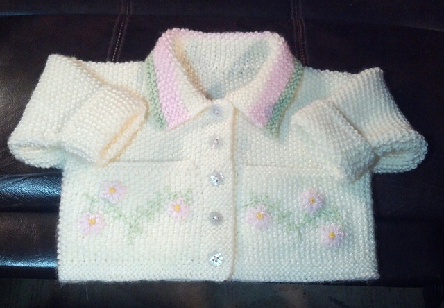 The 7th and final baby sweater for Katie’s new baby girl, due to make her Grand Entrance in January! The baby shower is Dec 21.