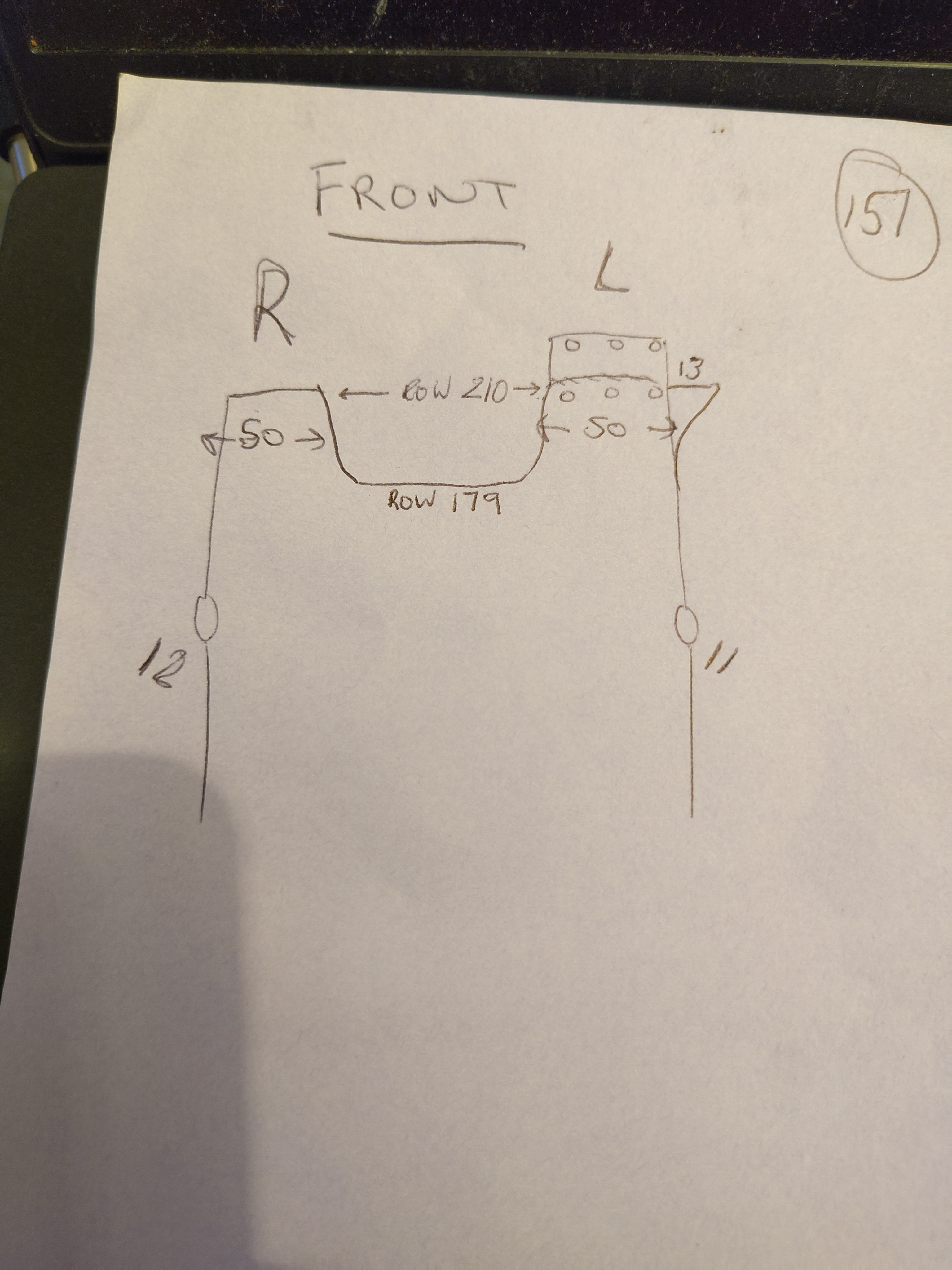 There’s certainly something wrong with the stitch count which adds up to 165 not 157.