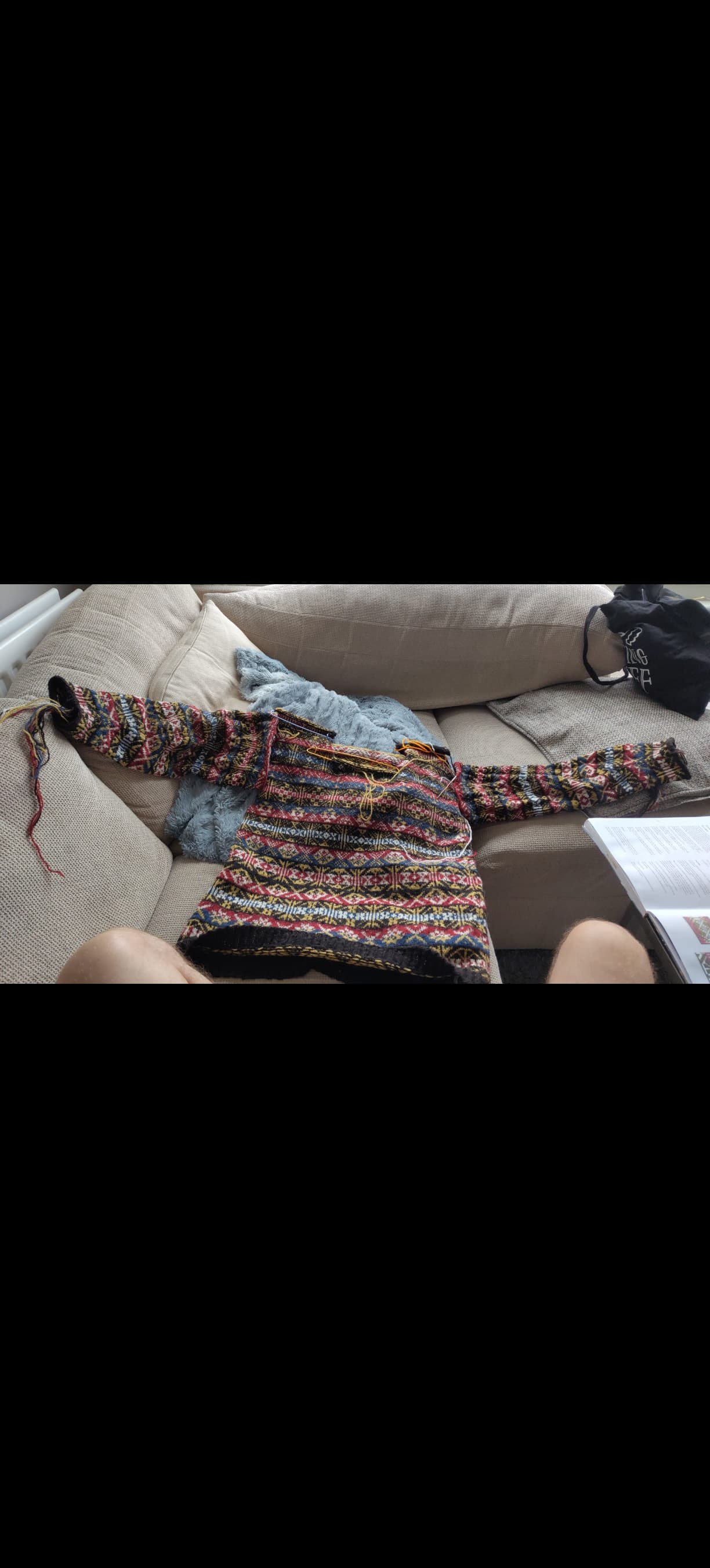 The colour work for the back neck/shoulder doesn’t match up, wondering whether to match them to the same block colour? But one knitter did point out that our back shoulders naturally shape a certain way, sitting slightly away from the head etc… so I might be making the jumper and odd fit if I do so, thoughts?