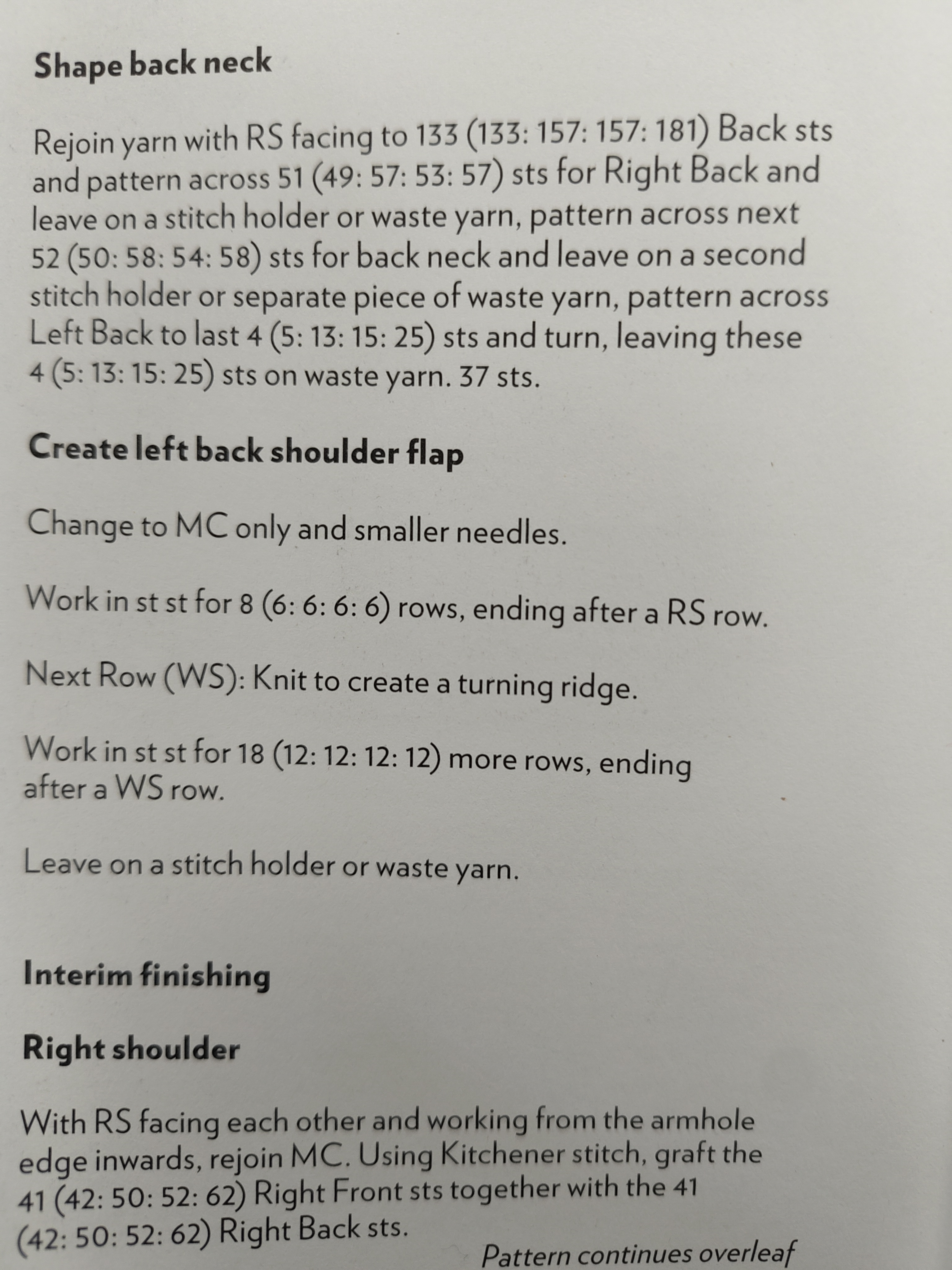 I just don’t understand why the designer would leave the flooer half finished at the back? There is no shoulder flap this side. It’s just simply that the front shoulder is instructed to knit and additional 12 rows whilst the back right shoulder is put on waste yarn without additional knitting to match the front:
