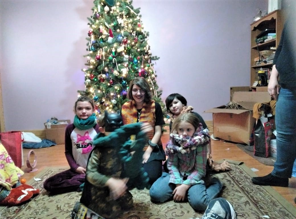 To bad the scarves didnt have a puzzle like connection from child to child. Enticing them to figure it out and causing them to line themselves up for photo proof of their cleverness.