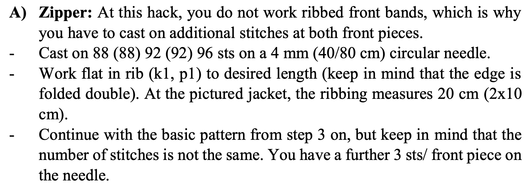 I was thinking of redoing the neckline and casting on more stitches but I am confused about how I would continue with the rest of the pattern (below).