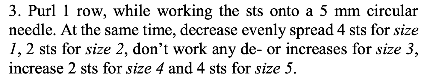 For size 4 you need to increase 2sts after the rib and before the body anyway so adding sts then decreasing will work. You can probably add in the extra sts for size 3 and then decrease for the body too.