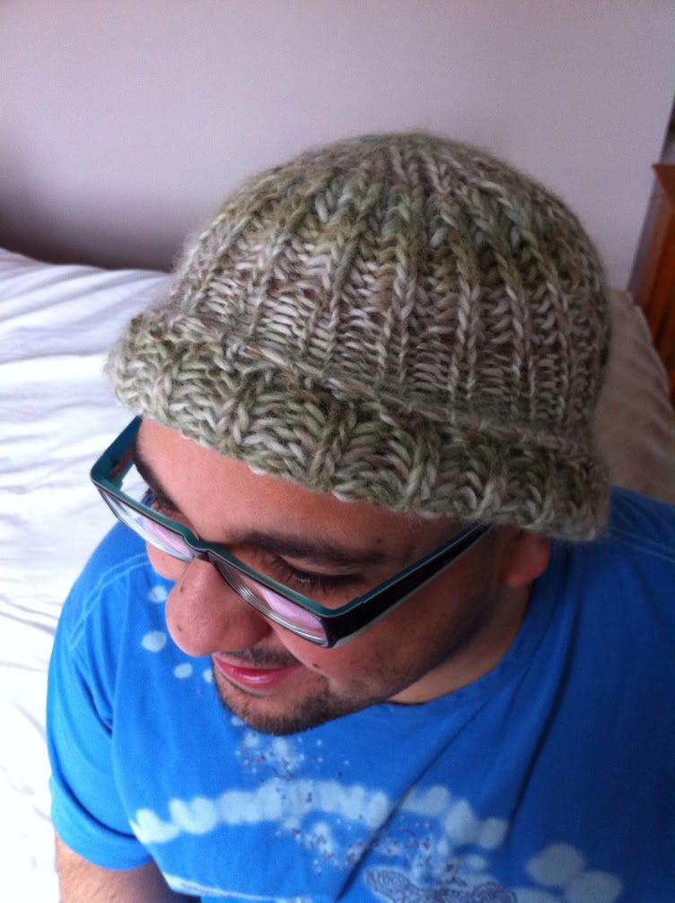 Even though the resulting pattern looks the same, the stitch that’s actually used for this hat is the brioche stitch which is done with yo’s and slip sts. Fisherman’s rib is done by knitting into the stitch below.