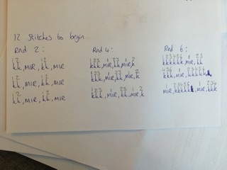 I think you will count the increases you made in Round 2 as actual stitches in Round 4 and then the increases you made in Rounds 2 and 4 as actual stitches in Round 6. I think that’s right though I’m rubbish at maths! I’m also not very good at explaining things sometimes so somebody might like to put this a little better than I can