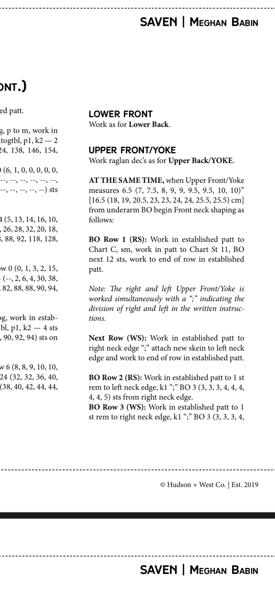 I am knitting the Saven sweater pattern by Meghan Babin. I am nearly done as I have reached the raglan neck portion of the front piece. I have knit, ripped out large chunks, and repeated the process several times. Each time I have altered the pattern to remove more and more rows, but my front piece is still 3-4 inches longer than the back. It is identical in length at the underarm bind off.