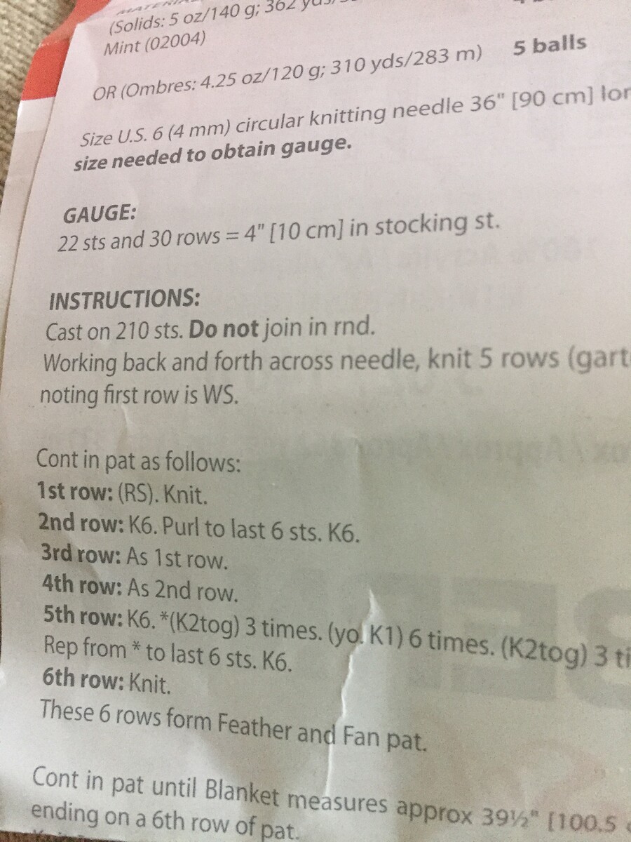 The pattern is correct i made a shawl using the feather and fan pattern., the holes occur becsuse of the yarn overs and the knit togethers. I love the pattern and find it very versatile. By the way i love the color. Take a picture when it is finished.