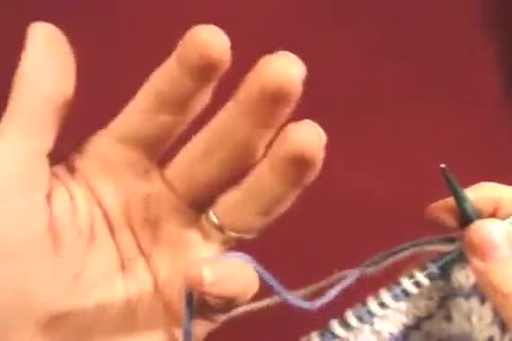 If you’re new to stranded knitting this is worth watching the whole thing. She carries both yarns in one hand. I use both hands, but the back would be the same I assume. I’ve only knit fair isle in the round.