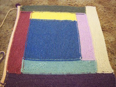I have been working on my squares, now I have 14.5 done…and my squares are done from corner to corner in garter stitch, like Granny’s Favorite Dishcloth, so I can’t figure out if it’d be easier to seam them together at the end or try to do like you suggested Artlady, and pick up stitches from the previous square while knitting the new one :hmm: