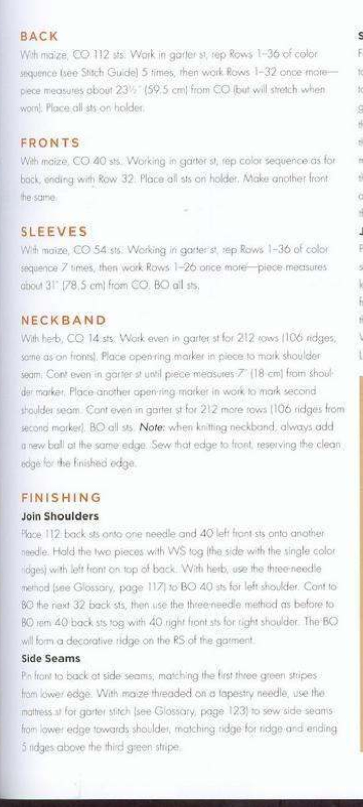 As for the sleeves, you could turn it but that would eliminate the lovely continuity of the sleeve stripes across the body. It’s a lot of knitting but it’s preferable to re-do the sleeves knowing your gauge as measured on front or back.