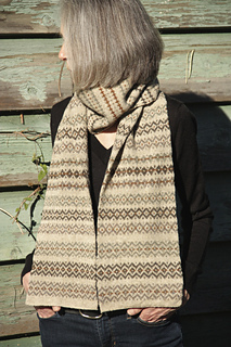 The other option is to knit a long fair isle tube and then graft the two ends together. That way you’ll end up with a scarf the same thickness as a double knit, but with all the grafting on the inside where it can’t be seen.