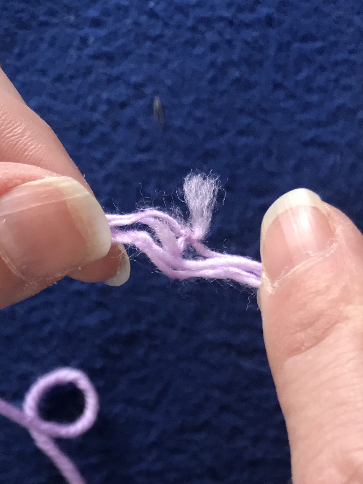 This is the second time I’ve seen this with this yarn, a knot in one ply of a 4-ply yarn. What would you do? Clean it up and knit with it? Cut it out and start fresh with a join?