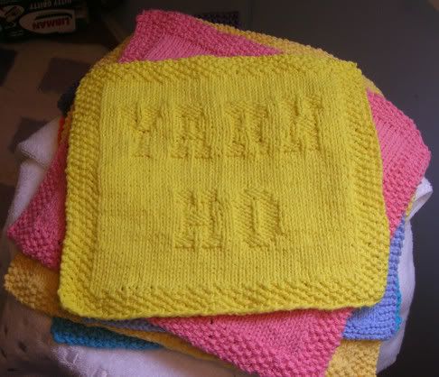 My goodness, I’m a yarn ho! I’m not even faithful to knitting–I love to crochet also! Perhaps I should knit myself a sweater, then crochet a big lacy scarlet A on it . . . I usually have 2-3 WIPs at one time, though I’ve been good about finishing Christmas gifts lately. My crocheted afghan is on the back burner for now, but that’s it.