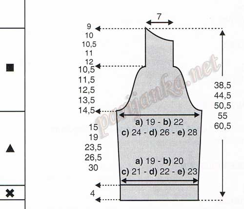 ? At the height of a) 15 cm (32 p.) B) 19 cm (42 p.) C) 23.5 cm (50 p.) D) 26.5 cm (58 p.) E) 30 cm (66 p.) From gum Form doused sleeves, closing on each side: