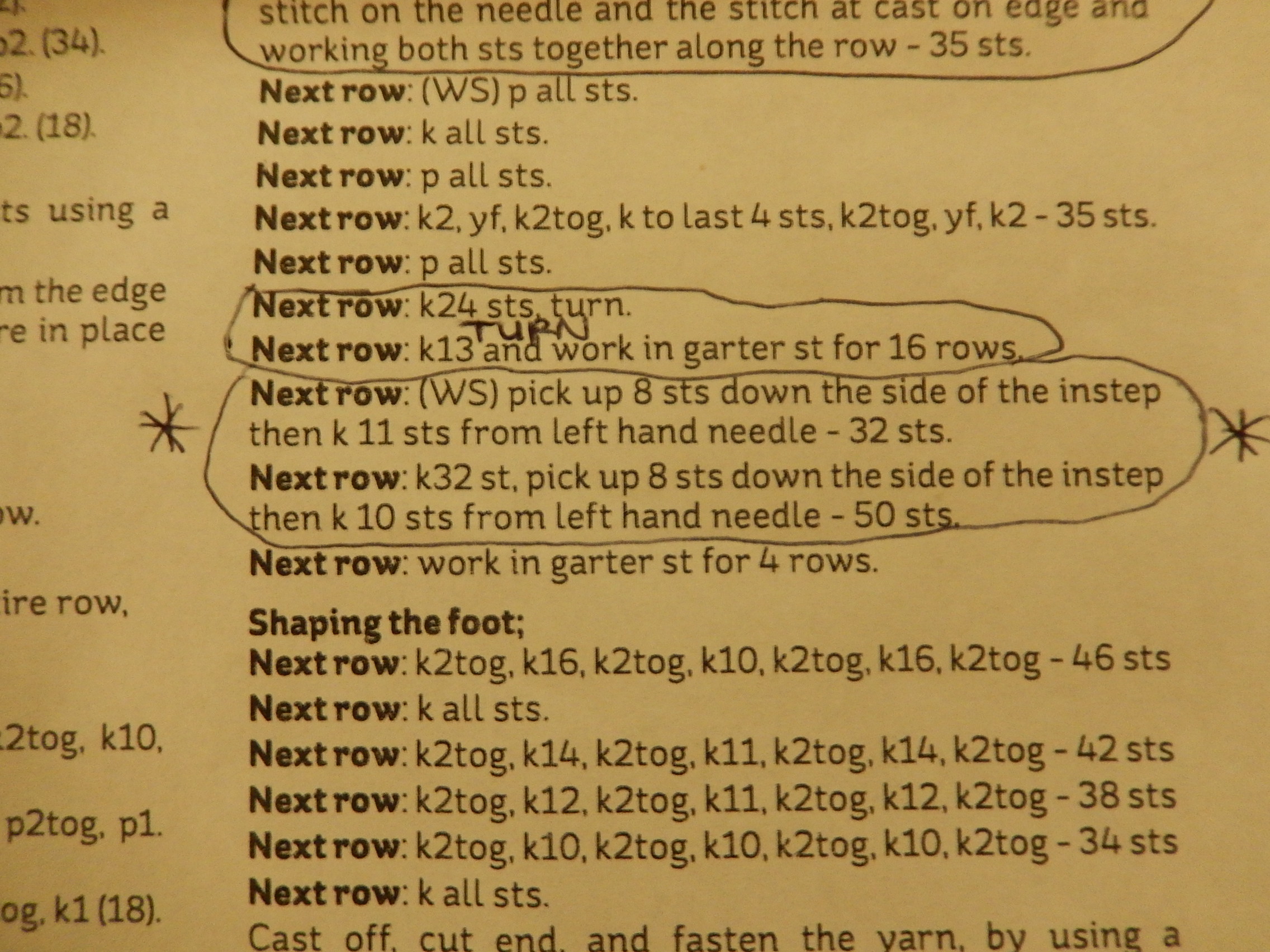 I’ve now finished them but there’s a lot NQR about them, thanks to that next mistake in the pattern! As you correctly said there were 51 sts after this step not 50 sts as stated. I then wrongly assumed I should have 50 sts for the foot shaping (should have worked it out in advance!) so decreased by a st in the 4 garter st rows. When I came to shaping the foot I then discovered I was a st short of course but carried on regardless as I was losing patience by this stage. I shall let Hobbycraft know but I wonder, do patterns often have mistakes?