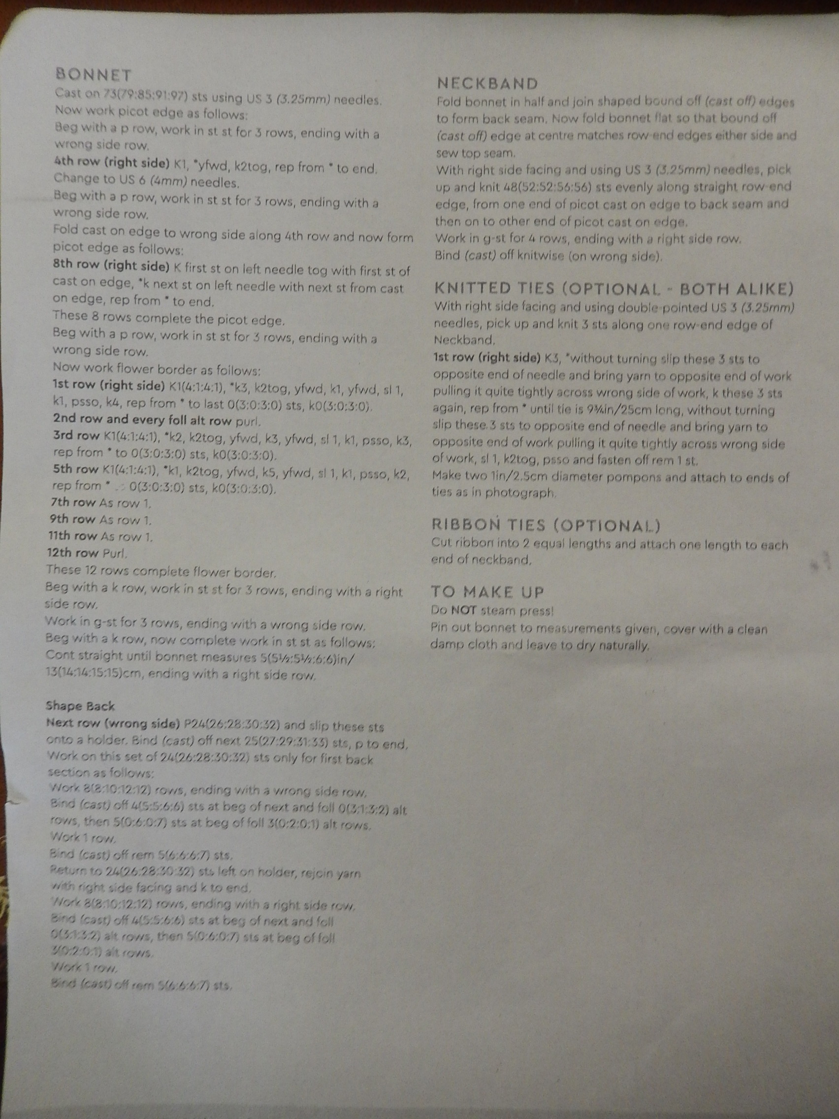 Booties got finished although I didn’t really enjoy doing them as the pattern wasn’t the best! I went on to an heirloom bonnet and this was going great, even though intermediate, as instructions were clear and everything worked out well…until now that is! Have got to the section labelled “neckband” and am completely stuck again as I just don’t understand what to do next. I’m even wondering if this bit is accidently from another pattern as being a bonnet you wouldn’t expect a neckband? Also, reading on to the end there’s no mention of what to do with the slipped stitches on the holder that occurred whilst shaping the back. Any help please, much appreciated…also, please can you let me know if I should be starting a new thread for each question or is it ok to carry on here?