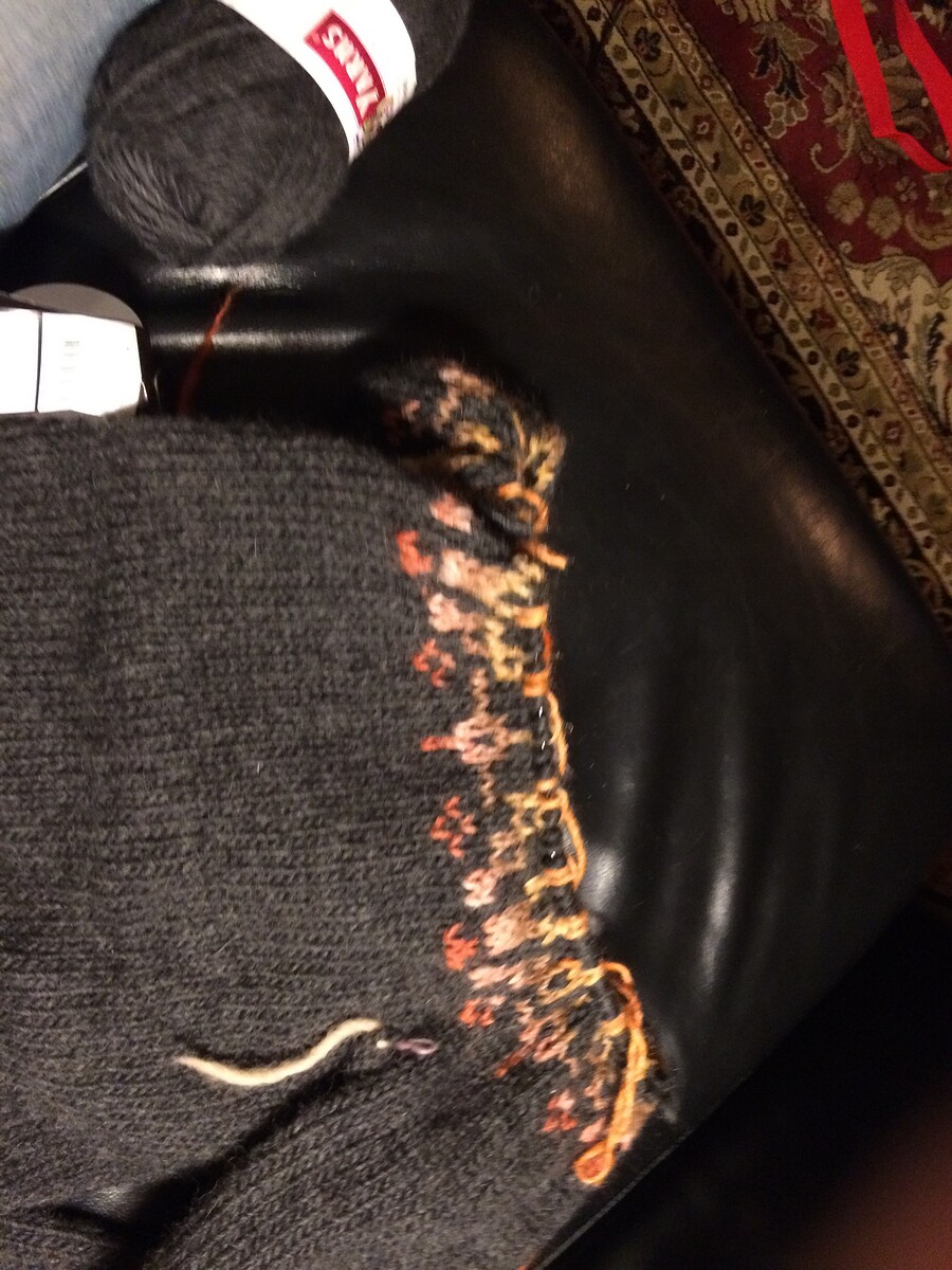 Sneak peek on the sweater progress. Pattern is Sky Isle Cartigan. Using Berkshire for the dk. Grey heather, and Silk Garden for the color work, which I’ve used before, but am realizing I must use more often. Love love love Silk Garden for fair isle!!!