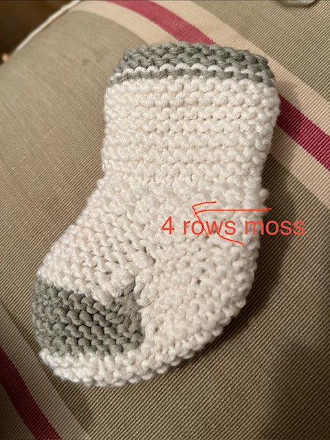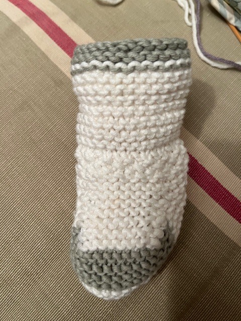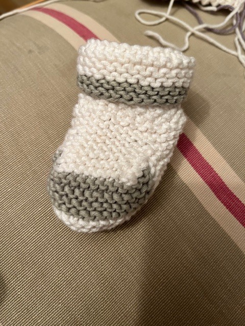 So frustrating to try to find these patterns. I had a book that was shaped like a sock and contained several baby booties patterns but it’s long gone. Ravelry and online searches turn up many cute patterns with a cuff to keep them on.