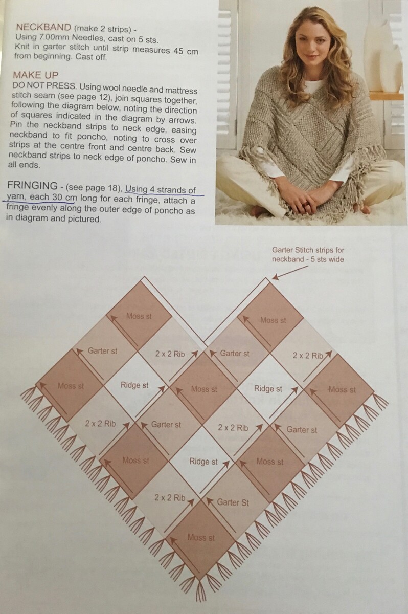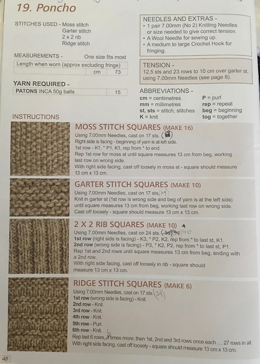 Thank you for your reply, this is the pattern along with wool I used, I needed to adapt the pattern to the wool I used, e.g. more stitches as wool not as thick and smaller needles, I started this mid 2016 to give myself a project due to having a hip replacement. All I needed to do to complete was a couple more squares & neckband.