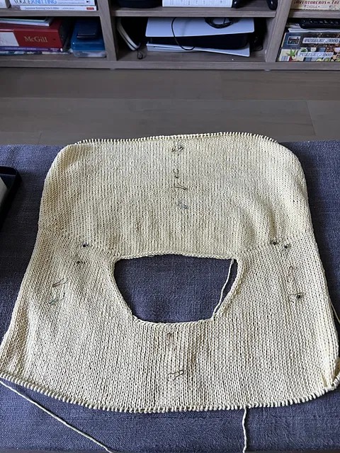 My guess is that I should continue to knit until my front panel reaches 33 cm, so that when I join the back and the front together, the armhole is large enough for me to pick up stitches to create a nice oversized fit?