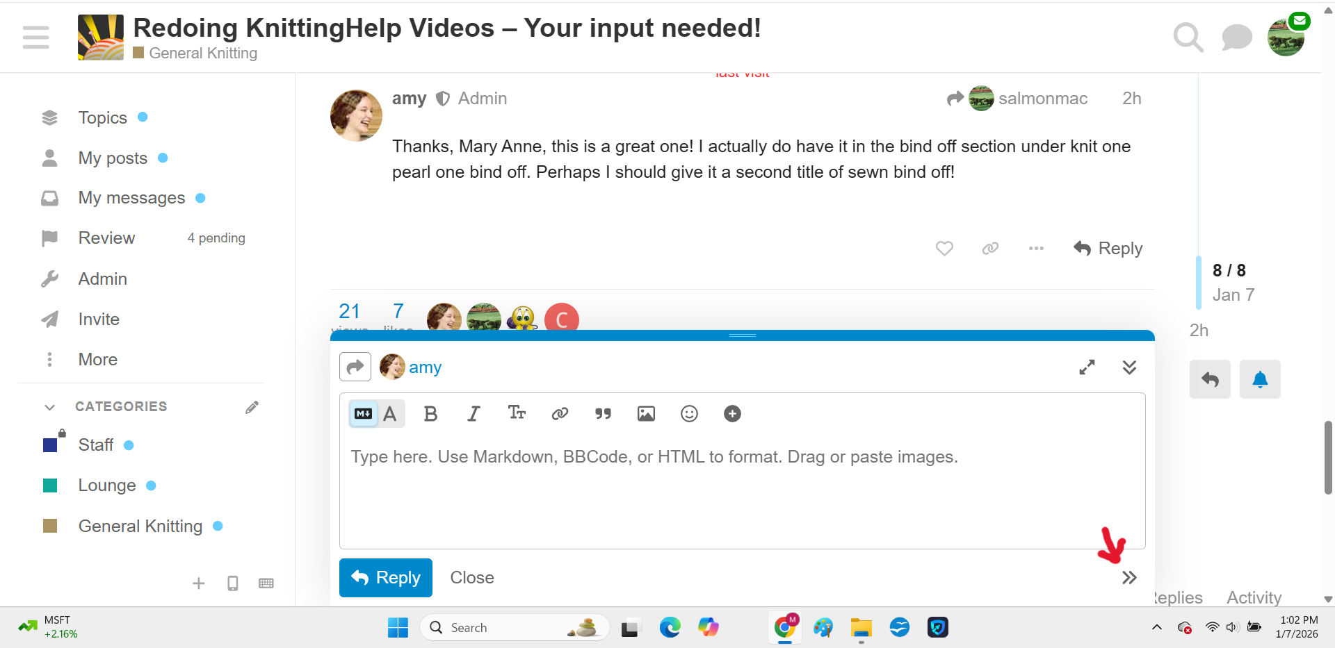 Hello everyone! Amy Sundari Finlay here, the creator of KnittingHelp, and the hands/voice/face in KH videos. First, since I don’t post here often, I just want to say “Hi!” and also thank you for your participation in our forum! Especially to our regulars, thank you so much for your long time presence. It wouldn’t be the same here without you!