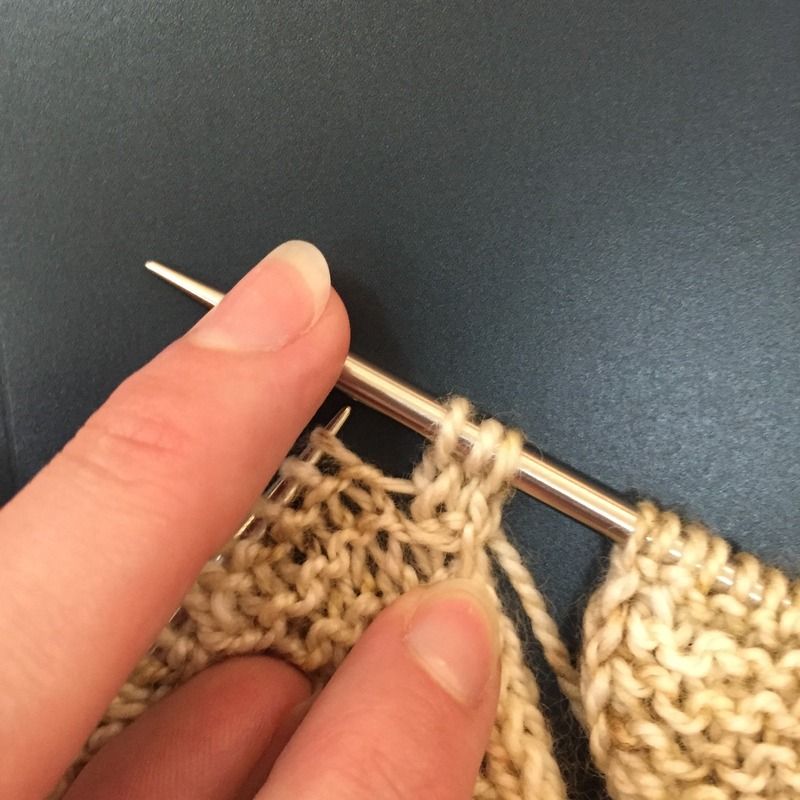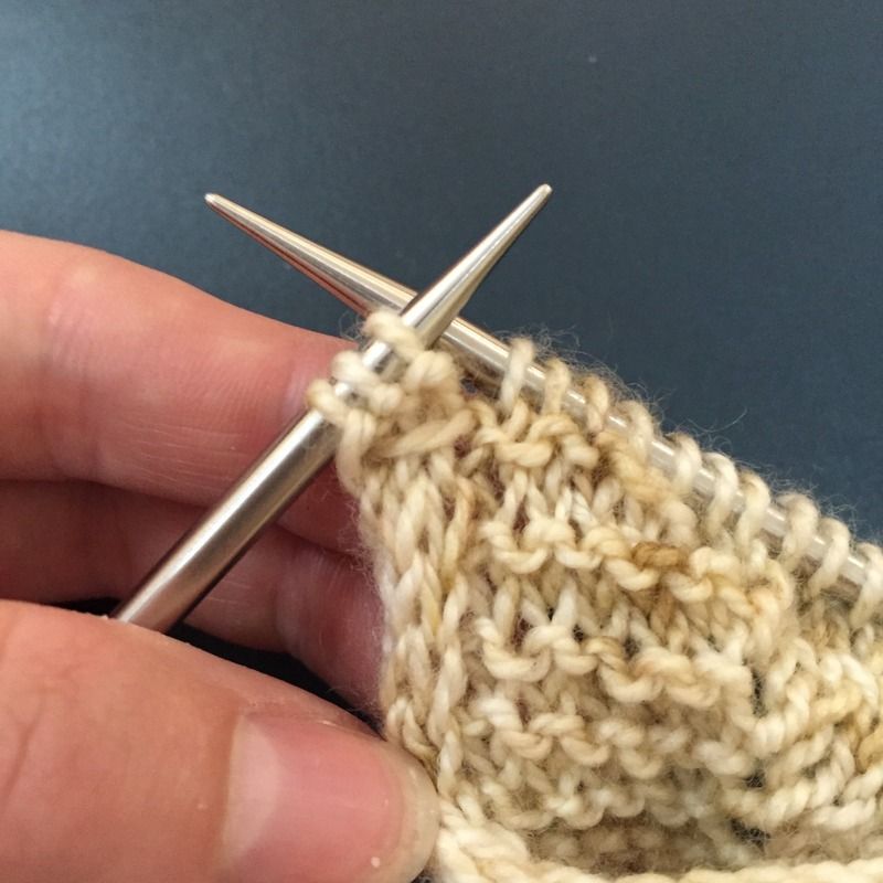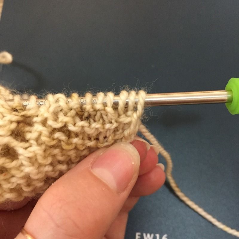 Here is the view after I’ve knit the first 3 stitches for the icord, on the WS.
