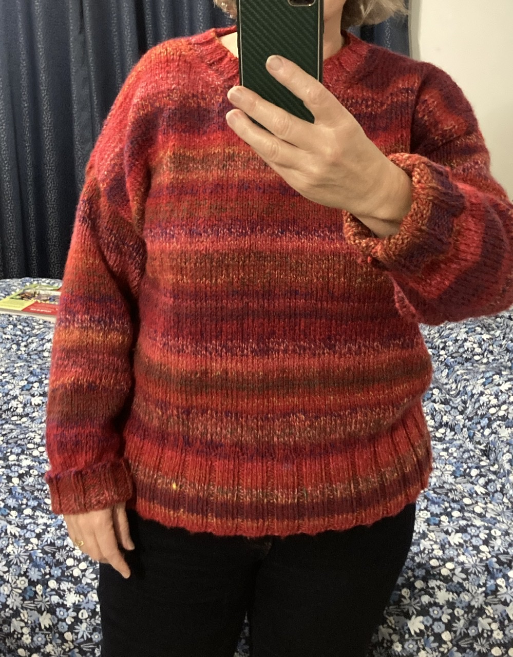 Beautiful colors and sweater! The sleeves have worked out very neatly. Enjoy every cozy minute wearing it.