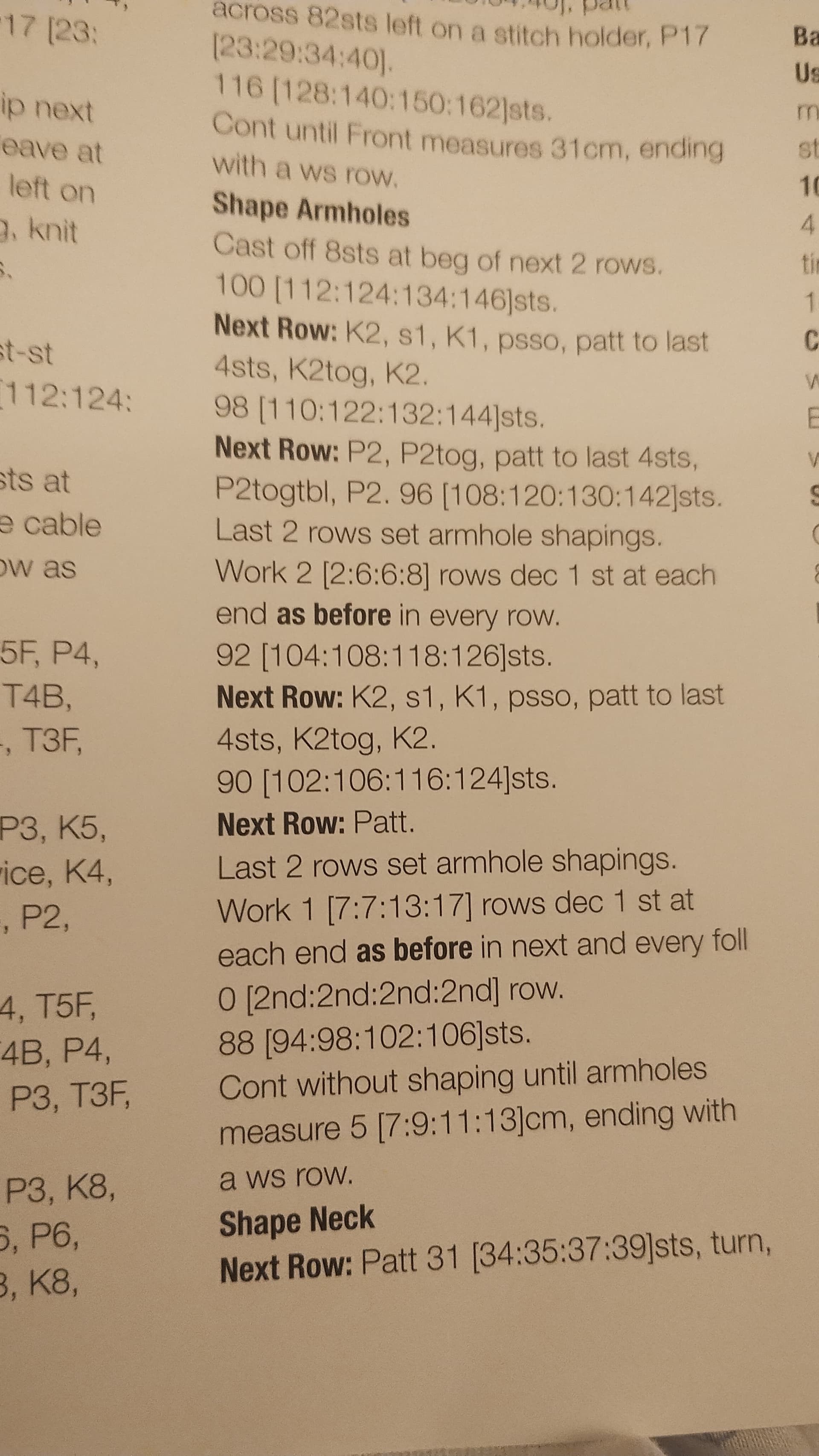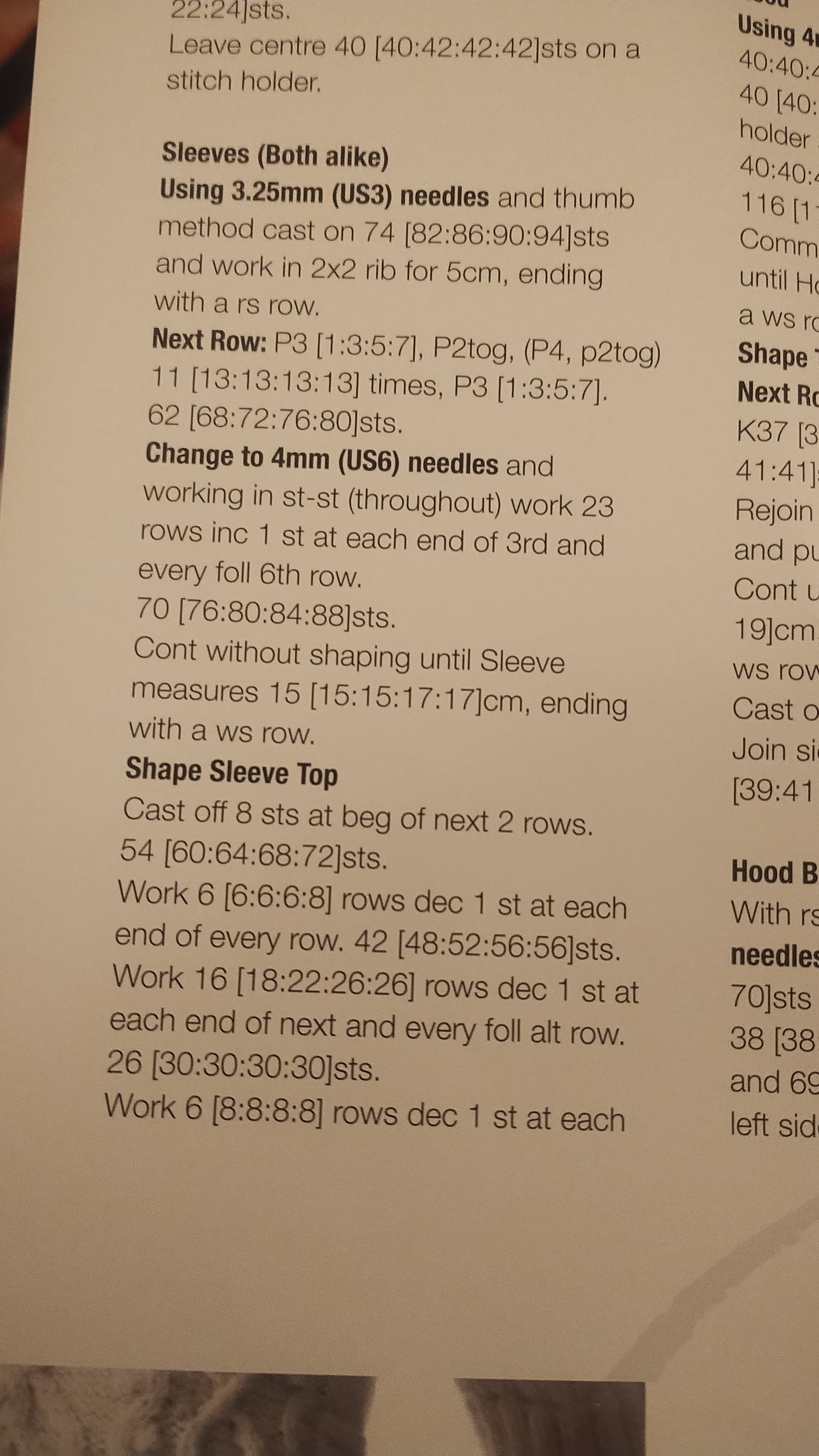 I would begin with the given stitch count for the cuff rib and then just hold it around my wrist and see if it was the right size or not. I’d use the rib (2x2) to help me count how many stitches I’d need for my ideal cuff size. It may need changing, it may not. The “shape sleeve top” cast a cast off of 8 sts, this is the underarm and the part just before has a worked staright section which I’d copy the stitch count of so i could use the same sleeve top shaping as guven in the pattern. Measure from underarm to wrist to get the total length and aim to be at the same stitch count as given for the short sleeve.