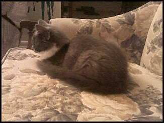 LOL, well the whole name comes from a silly adult cartoon that only ran for a little bit and then went off air. It was called Sealab 2021. There is this episode where the captain knights a guy “Sir Demos” and then they go under “martian law” and they run around marrying random people and such. It is silly but I couldn’t stand the idea of Mau’dib. That is what my BF wanted and it comes from the book series “Dune” but Frank Herbert. Suffice it to say, Mau’dib is a prophet of sorts, he comes and leads a ji’had. this ji’had kills 100’s of millions of people and his followers chant his name “Mau’dib, Mau’dib, Mau’dib” it’s so creepy sounding in the movie I just couldn’t do it! He is a cute little kitty! LOL my BF is just weird.