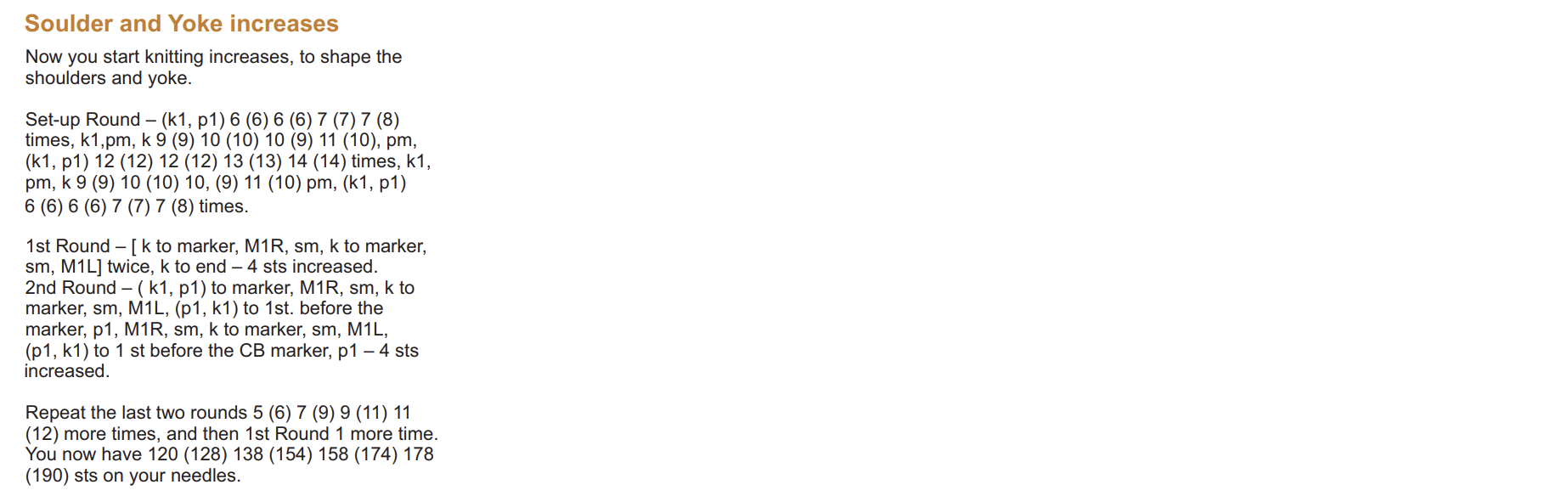 On my count I keep having 112 sticthes (XS size - 68 + 8*5 + 4). What I’m not seeing? Where are the extra 8 stitches? Or when repeat is mentioned does not include the already knitted (1st round, 2nd round)?