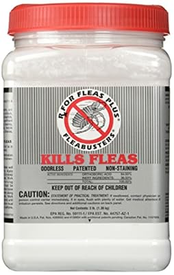 We use Frontline Plus and Terminator powder for fleas on carpet, furniture, etc. I don’t think they make the Terminator any more, but this is about the same. It’s a borate type flea powder that stops fleas for at least a year.