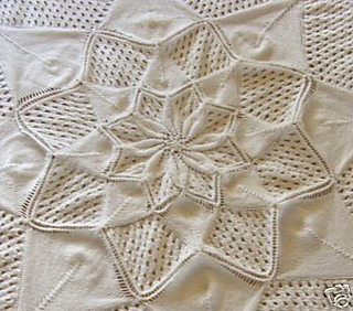 Are you thinking of a round blanket? There are several pages on Ravelry if you search for round flower knit blanket.