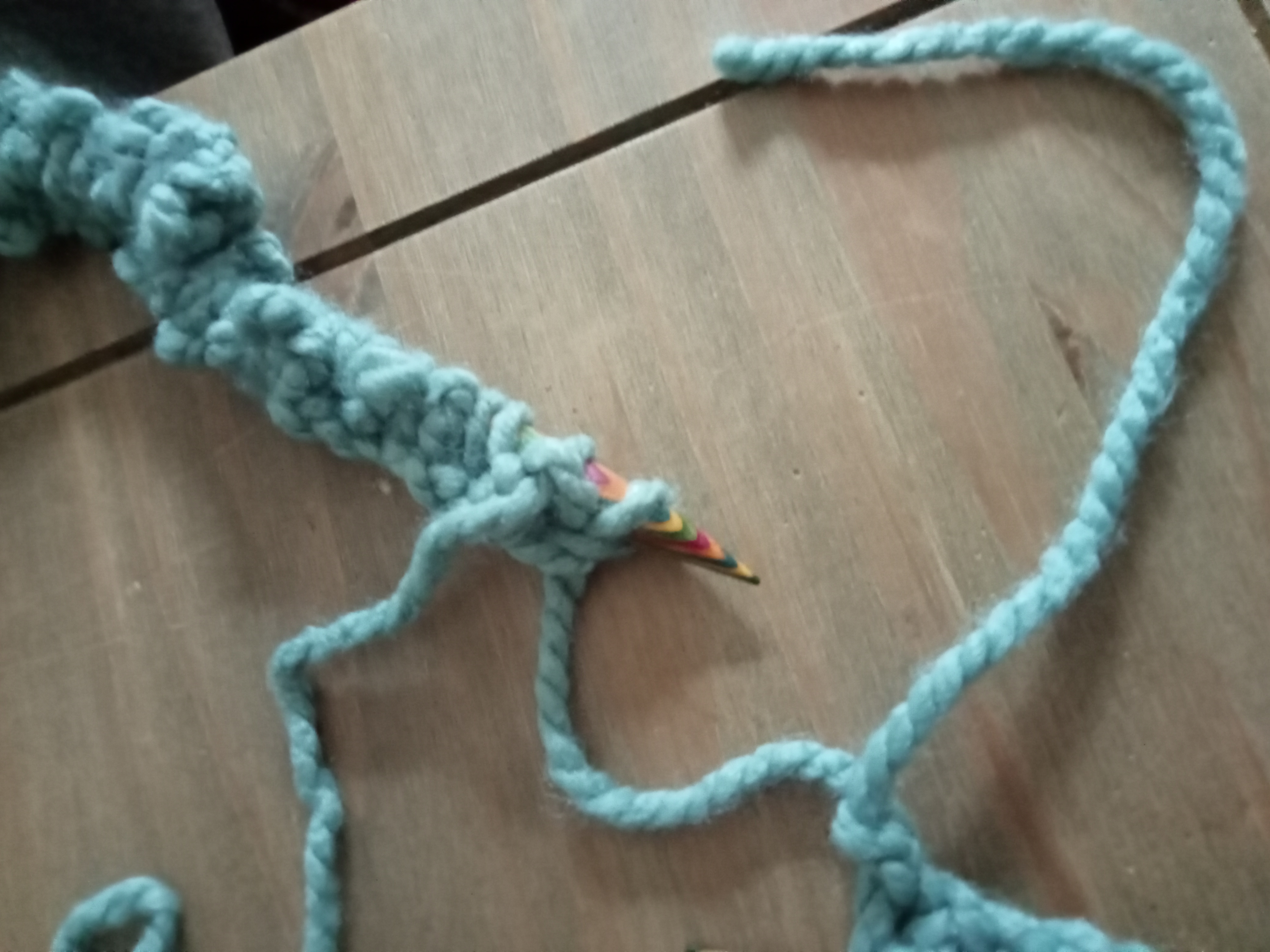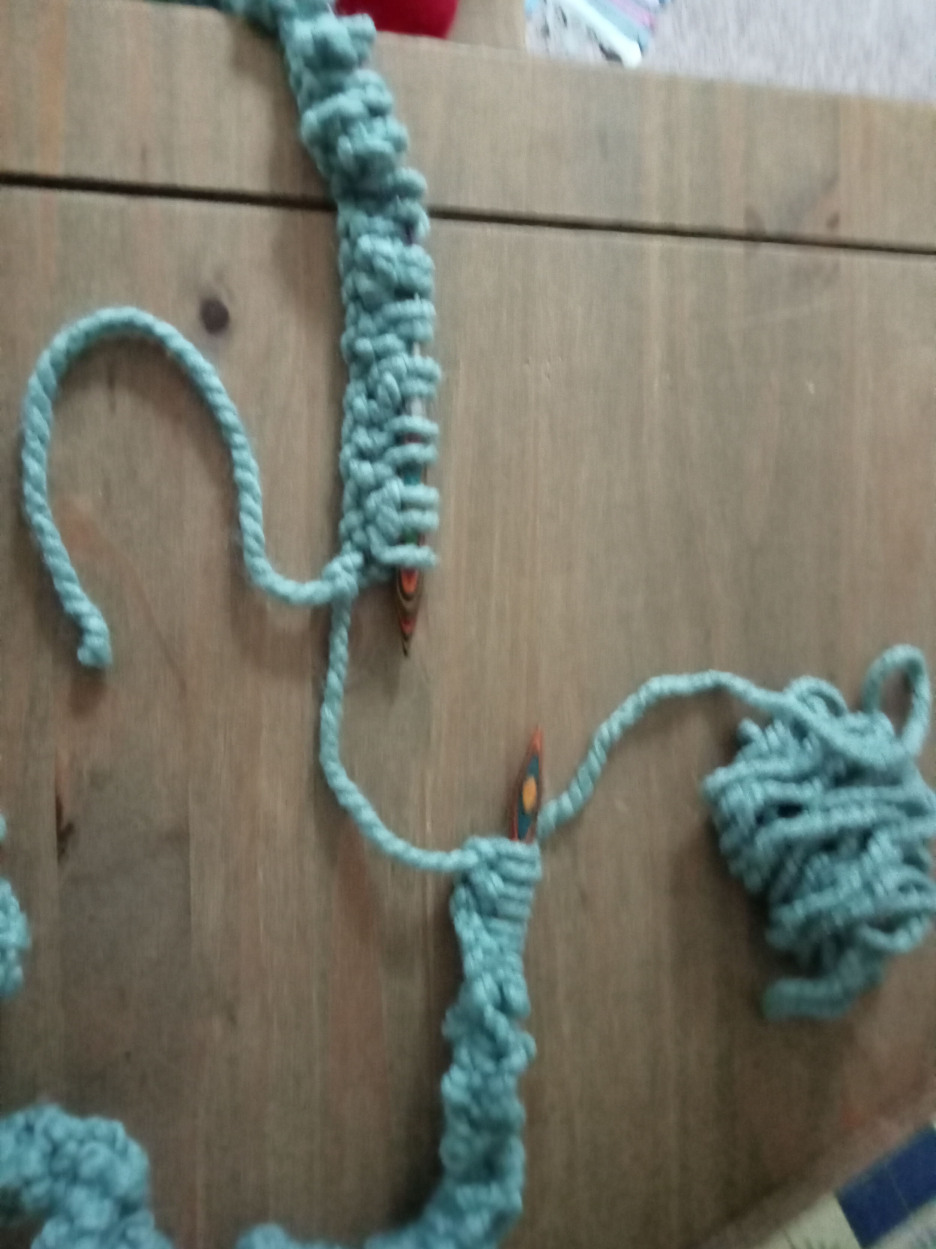 Knitted first row in 2x2 rib and when I got to the end i’m still connected by a long bridge thing.