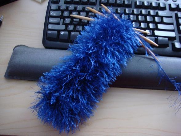 My sister works for a National Dollar Store Chain and they had a very large box of eyelash and fun fur that was to be destroyed. Some of the rolls had lost their label, tangled, etc. Of course she threw it my way! LOL! I untangled what I could (after all it was fun fur, not cashmere!) and ended up with well over 50 balls.