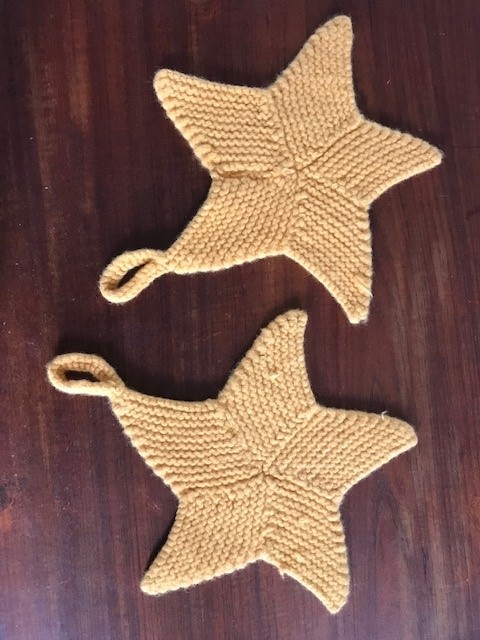 I started knitting a few weeks ago and have made a couple of stars.