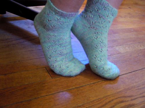 Oh!That 4AAT project was from a couple of years ago. I posted that pic just to show how I kept the yarn from getting tangled. Here’s how the socks came out. Glad you like the yarn; I dyed it.