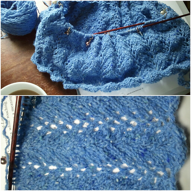 Your lace work is very good, and the color is so pretty! Can’t wait to see the finished product!