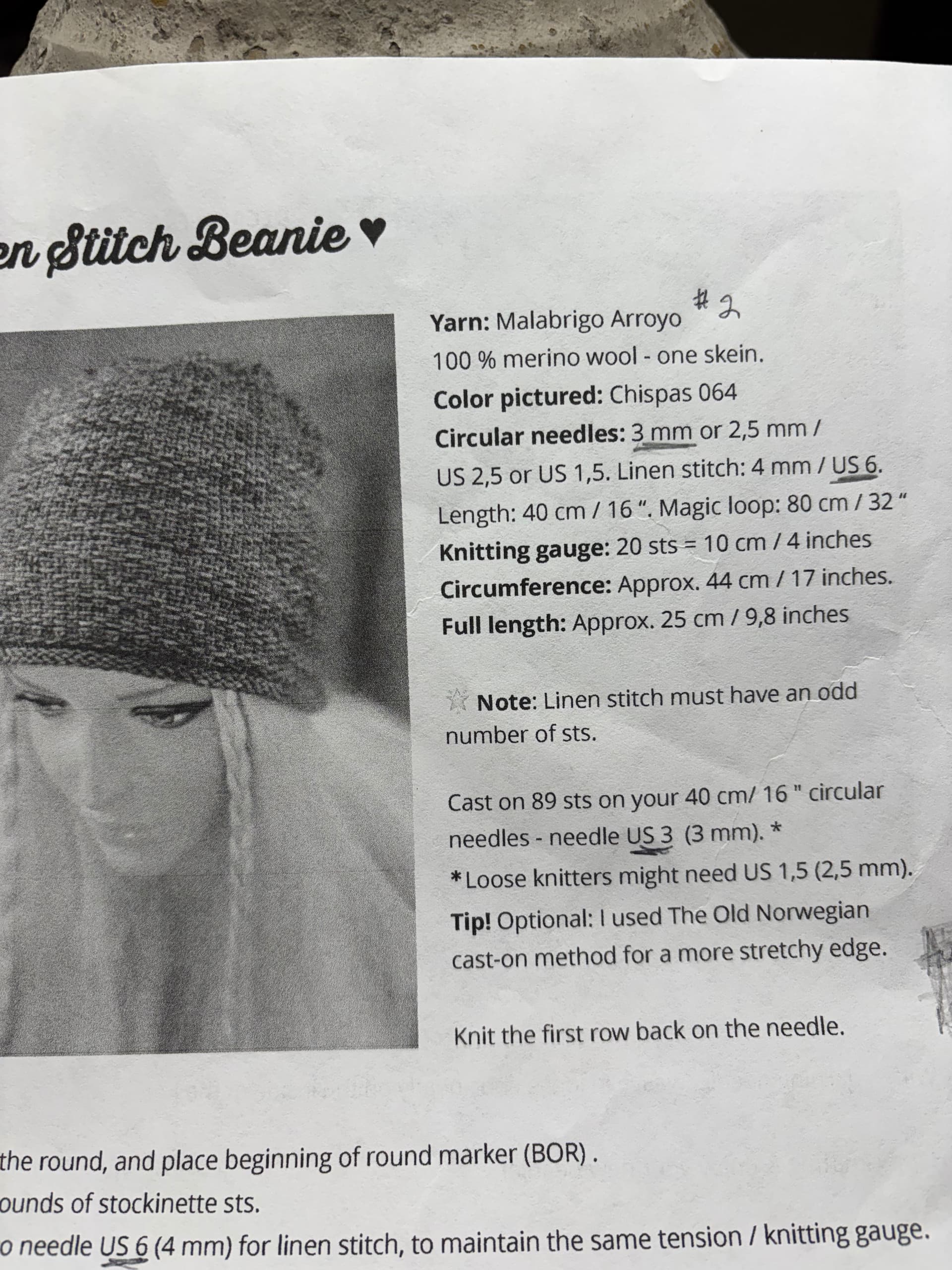 The pattern says the finished circumference is 17", which seems very small unless the fabric is really stretchy. Which linen stitch is not. Most women’s heads are 21-22" (52-56cm). I would definitely try the larger needle, and maybe even add a few stitches.